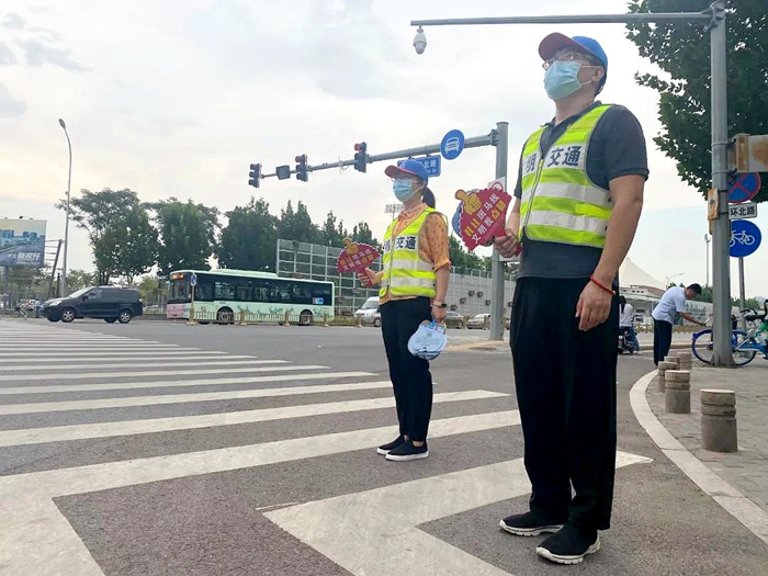 在9月8日的兩個(gè)志愿服務(wù)現(xiàn)場(chǎng),10名志愿者配合路口執(zhí)勤交警和協(xié)管員維護(hù)交通秩序,引導(dǎo)轉(zhuǎn)彎車輛禮讓斑馬線,同時(shí)對(duì)行人闖紅燈、非機(jī)動(dòng)車越線停車等違法行為進(jìn)行勸阻,推廣禮讓斑馬線的文明風(fēng)尚,引導(dǎo)市民群眾養(yǎng)成文明交通習(xí)慣,展現(xiàn)了北化集團(tuán)青年職工朝氣蓬勃的精神風(fēng)貌和勇于擔(dān)當(dāng)?shù)呢?zé)任感、使命感,為助力北京2022年冬奧會(huì)和冬殘奧會(huì)貢獻(xiàn)青春力量。