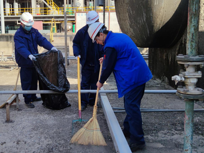 此次活動(dòng)充分結(jié)合安全生產(chǎn)、垃圾分類等重點(diǎn)工作,組織團(tuán)員青年開(kāi)展公益性勞動(dòng),對(duì)公司生產(chǎn)現(xiàn)場(chǎng)溶劑裝置區(qū)、罐區(qū)以及控制室北側(cè)走廊區(qū)域進(jìn)行全面清潔。