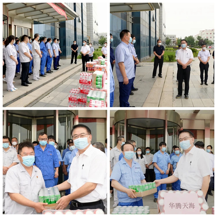 7月6日上午,陳宇一行來(lái)到集團(tuán)大興化工園區(qū),慰問(wèn)園區(qū)內(nèi)華騰化工、華騰天海、試劑所、化工廠4家企業(yè)的干部職工。陳宇對(duì)一線職工冒酷暑、戰(zhàn)高溫,認(rèn)真負(fù)責(zé)的工作態(tài)度給予了高度肯定,對(duì)4家企業(yè)疫情防控、防汛、防暑降溫措施落實(shí)情況進(jìn)行了督促和檢查。