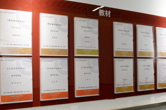 沒(méi)有成型的教材,王愛(ài)梅等老師就與這些特聘專家和技能大師一起探討,與團(tuán)隊(duì)教師合作搭建課程體系。現(xiàn)已完成10門一體化課程標(biāo)準(zhǔn)和教材、學(xué)材的開(kāi)發(fā),并打通了中高級(jí)直升人才培養(yǎng)機(jī)制,同時(shí)完成主編《陶瓷器基礎(chǔ)修復(fù)》《陶瓷器文物修復(fù)》,參編《金屬器修復(fù)》等課程資源包。