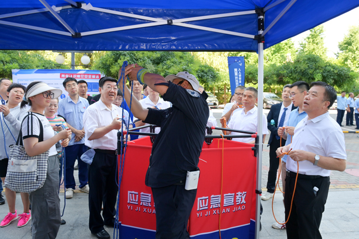 電動(dòng)自行車電池的穿刺實(shí)驗(yàn),讓大家實(shí)際感受到了電池在擊穿狀態(tài)下的危險(xiǎn)程度,提示了電動(dòng)自行車應(yīng)規(guī)范購(gòu)置、不私自改裝,電瓶及電動(dòng)自行車不進(jìn)樓入戶,要停放在集中停放、充電場(chǎng)所;煙熱環(huán)境模擬逃生讓體驗(yàn)者切身感受到“暢通生命通道”的意義,深刻認(rèn)識(shí)到日常工作中維護(hù)好“消防疏散指示標(biāo)識(shí)”在關(guān)鍵時(shí)刻能救命;擁擠踩踏應(yīng)急處置讓大家在緊急疏散的過程中避免受到更多的傷害,掌握安全繩扣的栓系方法便于快速?gòu)母咛幗抵涟踩貛?,心肺?fù)蘇及AED的正確使用讓大家知道如何自救互救,出真水滅真火讓大家熟練掌握了初期火災(zāi)的應(yīng)對(duì)方法。