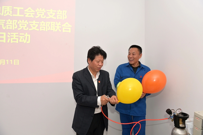 在交流中,北普公司包裝氣部黨支部書(shū)記王紹武介紹了工廠生產(chǎn)運(yùn)行情況,并重點(diǎn)匯報(bào)了包裝氣黨支部全體黨員為高質(zhì)量完成此次服務(wù)保障任務(wù),及時(shí)成立臨時(shí)黨支部,強(qiáng)化黨建引領(lǐng),發(fā)揮戰(zhàn)斗堡壘作用;黨員同志們從生產(chǎn)、運(yùn)輸、現(xiàn)場(chǎng)操作,到落實(shí)安全流程、人員培訓(xùn),始終發(fā)揮先鋒模范作用,以硬核擔(dān)當(dāng)帶領(lǐng)一線骨干,把好操作關(guān)、守好安全線,最終圓滿完成保障任務(wù)的感人經(jīng)歷。中國(guó)能源化學(xué)地質(zhì)工會(huì)黨支部的黨員同志們還在現(xiàn)場(chǎng)人員指導(dǎo)下,親手進(jìn)行氣球充裝,親身感受重大活動(dòng)服務(wù)保障中的緊張氛圍。