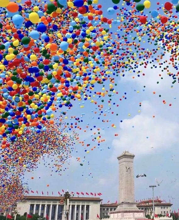 9月3日,紀(jì)念中國人民抗日戰(zhàn)爭暨世界反法西斯戰(zhàn)爭勝利80周年大會在北京天安門廣場隆重舉行。當(dāng)人們沉浸在雄渾威武的解放軍受閱部隊和滾滾鐵流中時,騰空而起的8萬支彩色氣球,伴隨著翱翔的和平鴿,將天安門廣場上空渲染得五彩繽紛、銳氣祥和,瞬間將紀(jì)念大會再次推向高潮。