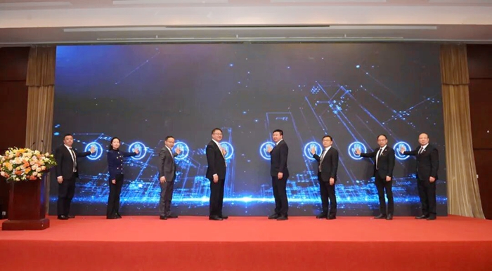 與會相關(guān)領(lǐng)導(dǎo)、專家共同為“雪蓮”微創(chuàng)手術(shù)手套揭幕。