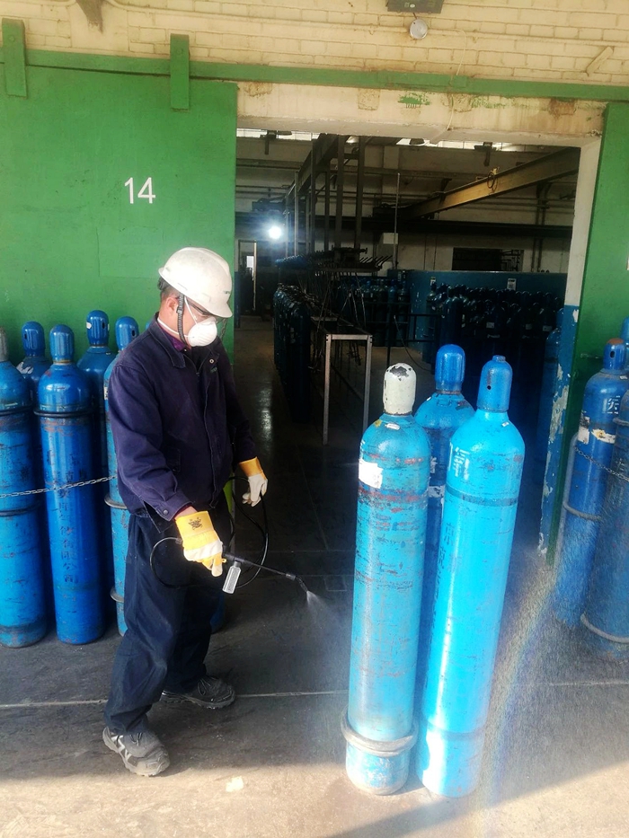 疫情大大增加了配送工作難度,配送員要全副武裝,穿上防護(hù)服、戴上防護(hù)鏡和防護(hù)口罩。每次配送前后,都要分別在公司和醫(yī)院對(duì)氧氣鋼瓶和車輛進(jìn)行消毒處理,以確保醫(yī)用氧在生產(chǎn)、運(yùn)輸過(guò)程中始終處于絕對(duì)安全狀態(tài)。