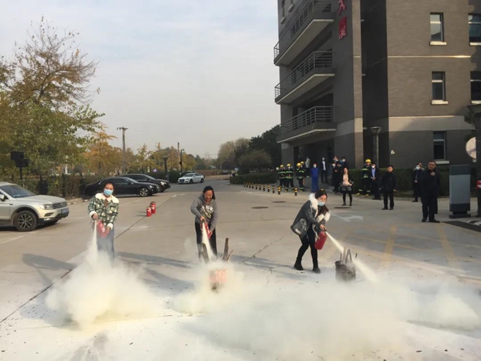 華騰丹陛華公司消防員為參演人員講解了滅火器使用方法和注意事項,參加實戰(zhàn)演練的干部職工們逐一提起干粉滅火器,進行實戰(zhàn)操作。