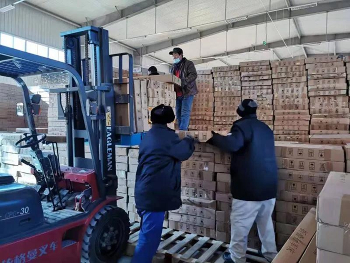 在這10余天與嚴寒較量的日夜里,19名華騰化工干部職工并肩作戰(zhàn),創(chuàng)造了16個日夜的貨場堅守,最終確保了1100余噸市應急物資的安全入庫的驕人戰(zhàn)績。倉儲事業(yè)部部長、共產黨員劉寶玉身先士卒堅守崗位,每天從早8點半至晚8點半盯在現(xiàn)場指揮協(xié)調調度。最多的時候每天25車物資,要接收碼放176噸貨物。就這樣,在10余天的忙碌中,劉寶玉全程共接收廂式貨車達200余車次,保證了全部物資安全有序接收碼放。