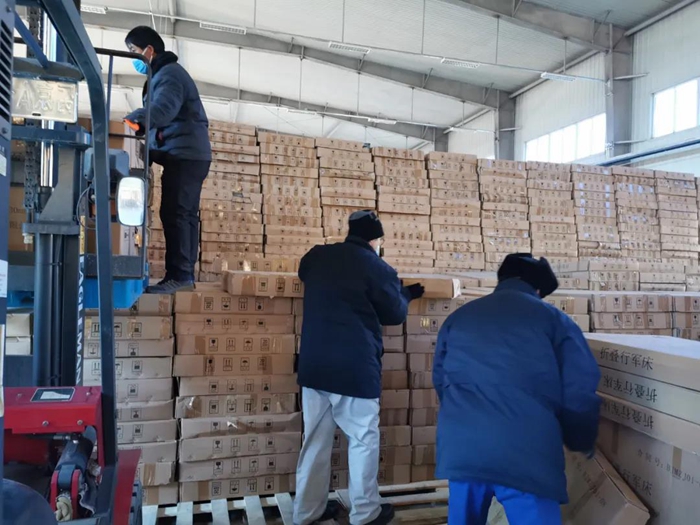 1月份,北京遭遇上世紀六十年代以來的極寒天氣,空曠的庫房溫度幾乎與室外相同,職工們的手腳被凍僵,但大家有的蹬上兩雙羊絨襪子,有的在身上、腳底貼上暖貼繼續(xù)奮戰(zhàn)在現(xiàn)場。有時午飯時間剛到,正好貨車也到了,此時沒有人會去吃飯,大家不約而同地奔向貨車,在卸完這趟車后才端起已經發(fā)涼的飯盒……
