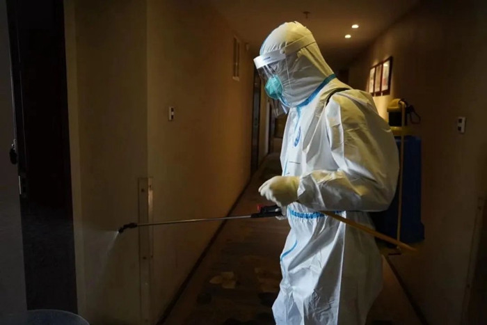 每天深夜,當(dāng)賓客們沉沉睡去,閉環(huán)服務(wù)人員還要進(jìn)行垃圾消毒清運工作。眾所周知,垃圾是病毒最容易傳播的媒介,為防止疫情傳播,閉環(huán)人員要對一袋袋垃圾進(jìn)行全面消殺,然后再手動一袋袋地將垃圾送至目標(biāo)場所,垃圾的異味常常令服務(wù)人員一陣陣作嘔,但大家沒有一句怨言。