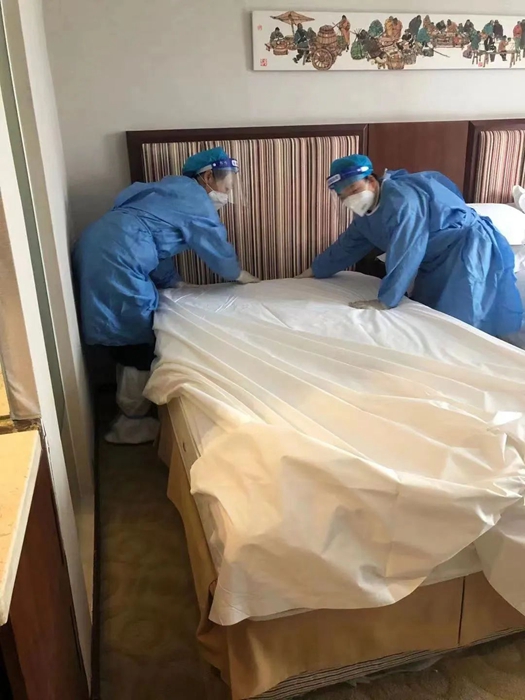 而今,又一陣戰(zhàn)鼓擂響。在這春風(fēng)徐來的三月,華騰美居酒店征塵未洗又接到新的任務(wù),要承擔(dān)起屬地政府要求的醫(yī)學(xué)觀察點保障任務(wù)??矗覀兊娜A騰美居人再次整肅妝容,精神抖擻地投入到疫情防控新的戰(zhàn)場之中……