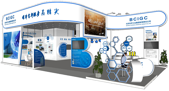 北京化工集團(tuán)所設(shè)展臺突出“化學(xué)讓未來更美好”理念,將所屬企業(yè)進(jìn)行集中整合,實(shí)現(xiàn)集約化參展。展臺通過華騰橡塑公司的橡塑手套加上炫彩效果,融入化學(xué)工業(yè)試管造型(頂部結(jié)構(gòu))、原子造型(造型伸縮燈球,現(xiàn)場展示不同造型)、分子結(jié)構(gòu)(苯環(huán)造型)等化學(xué)元素,柔和加入聲光效果,提升展臺氛圍效果,以弧形結(jié)構(gòu)為紐帶,敞開懷抱,擁抱大眾,讓化學(xué)走入人們的生活,以開放形態(tài)創(chuàng)造美好生活!