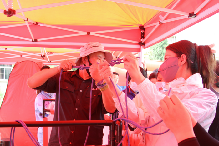 活動(dòng)現(xiàn)場(chǎng),專家講師在高溫天氣下,為公司職工詳細(xì)講解了心肺復(fù)蘇要領(lǐng)和AED的使用方法,開展了自救結(jié)繩演練、模擬滅火體驗(yàn)、模擬通道煙霧逃生等應(yīng)急活動(dòng)。