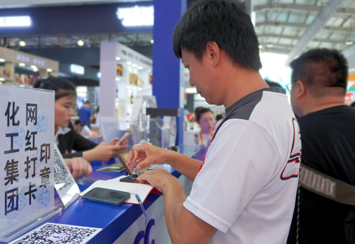 網(wǎng)紅打卡印章,是此次參展的又一亮點(diǎn),集團(tuán)為此專(zhuān)門(mén)制作了有集團(tuán)名稱(chēng)樓宇的印章。“4號(hào)館,北化集團(tuán),3免(3個(gè)印章、免費(fèi))”的服貿(mào)會(huì)攻略已在“小紅書(shū)”上傳開(kāi),人們紛至沓來(lái),在關(guān)注集團(tuán)微信公眾號(hào)后,將“北京化工集團(tuán)”印在自己的本上,讓北京化工在潛移默化中傳播。