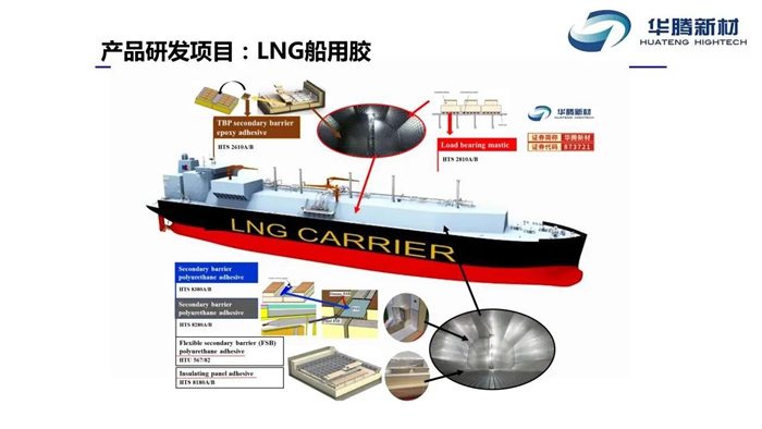 “十四五”期間,華騰新材在深耕傳統(tǒng)膠粘劑市場基礎(chǔ)上,直面LNG船用膠這一“卡脖子”技術(shù)難題,以高端新材料“破題”為抓手,以產(chǎn)業(yè)迭代為目標,將LNG船用膠作為解決自主替代難題,大膽突破,開拓新市場的重點科研項目。2023年,經(jīng)過科研人員多年全力攻關(guān),華騰新材LNG船用膠產(chǎn)品取得重要突破,其中絕緣板用聚氨酯膠粘劑成功通過法國GTT公司認證,并順利投入商業(yè)化生產(chǎn)。